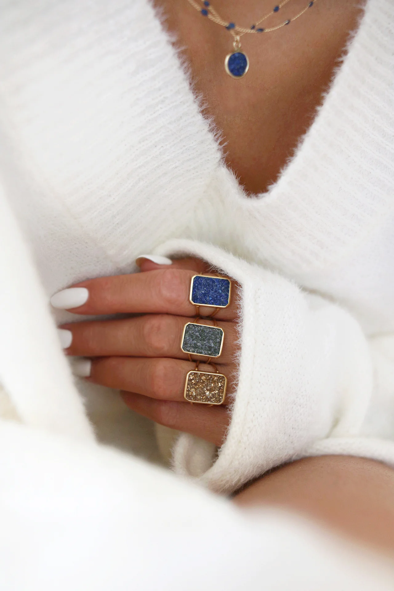 Bague made in France imaginée et réalisée artisanalement à Paris. La bague est réalisée à la main avec des pierres naturelles, chaque pièce est unique et présente ses propres irrégularités (variations de couleur et de taille des fragments de pierre).