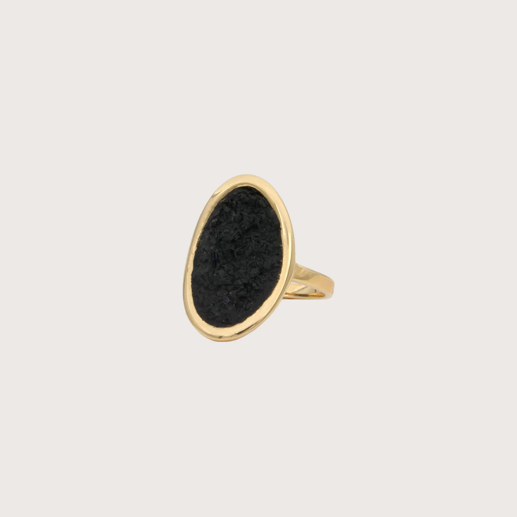 Bague Victoria de chez Leo Sedim en plaqué or, résine et incrustation de pierres fines de tourmaline noire – Leo Sedim