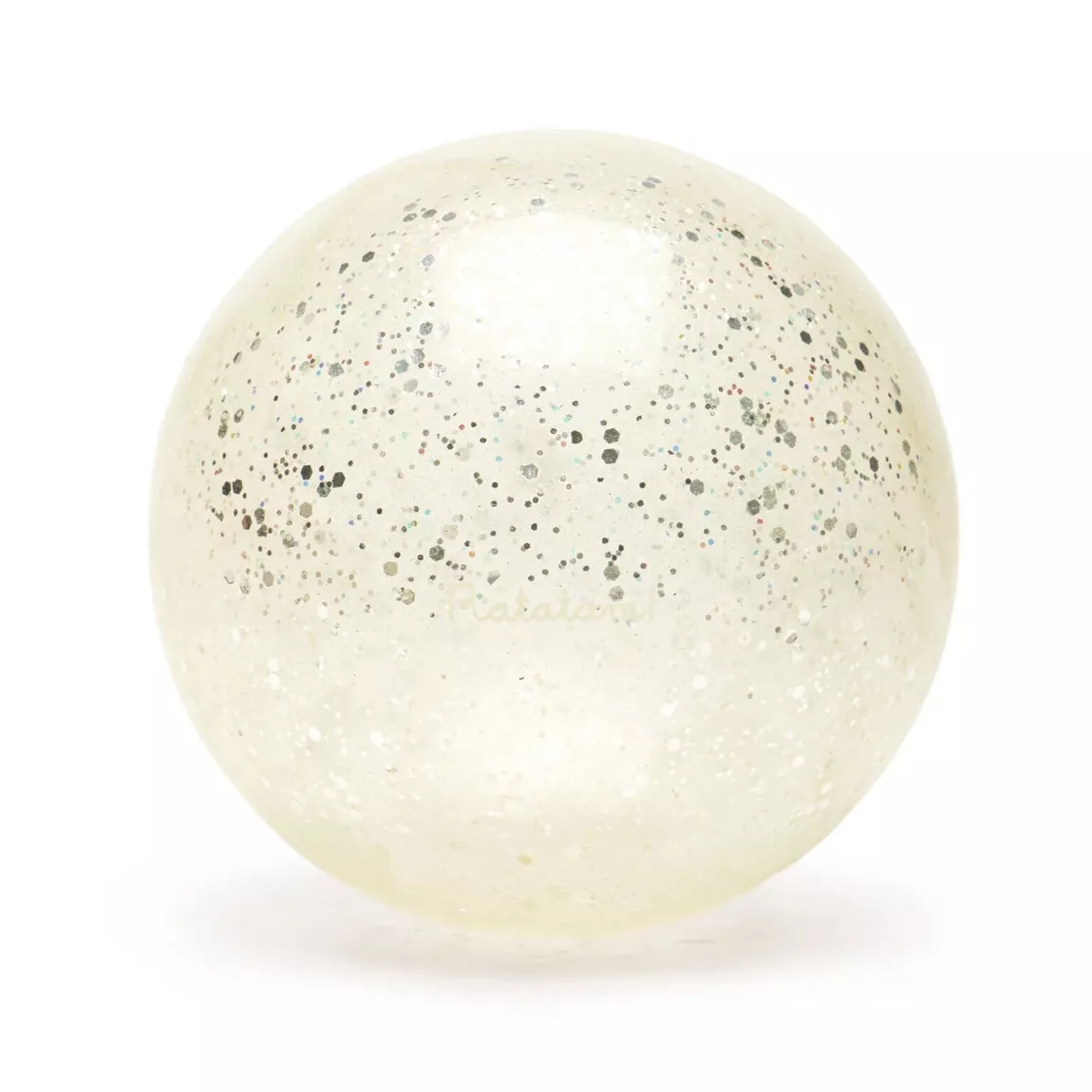 C’est à la fois une balle de préhension et aussi une aide pour la motricité des plus petits. Irrésistible à suivre et à attraper avec ses paillettes qui reflètent la lumière.