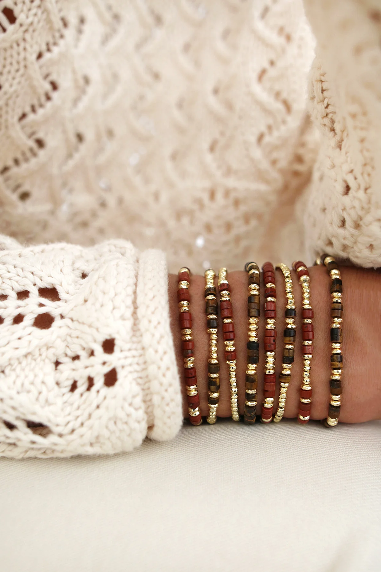 Bracelet de surfeur en pierres fines Agate noire, réalisé sur un fil élastique.