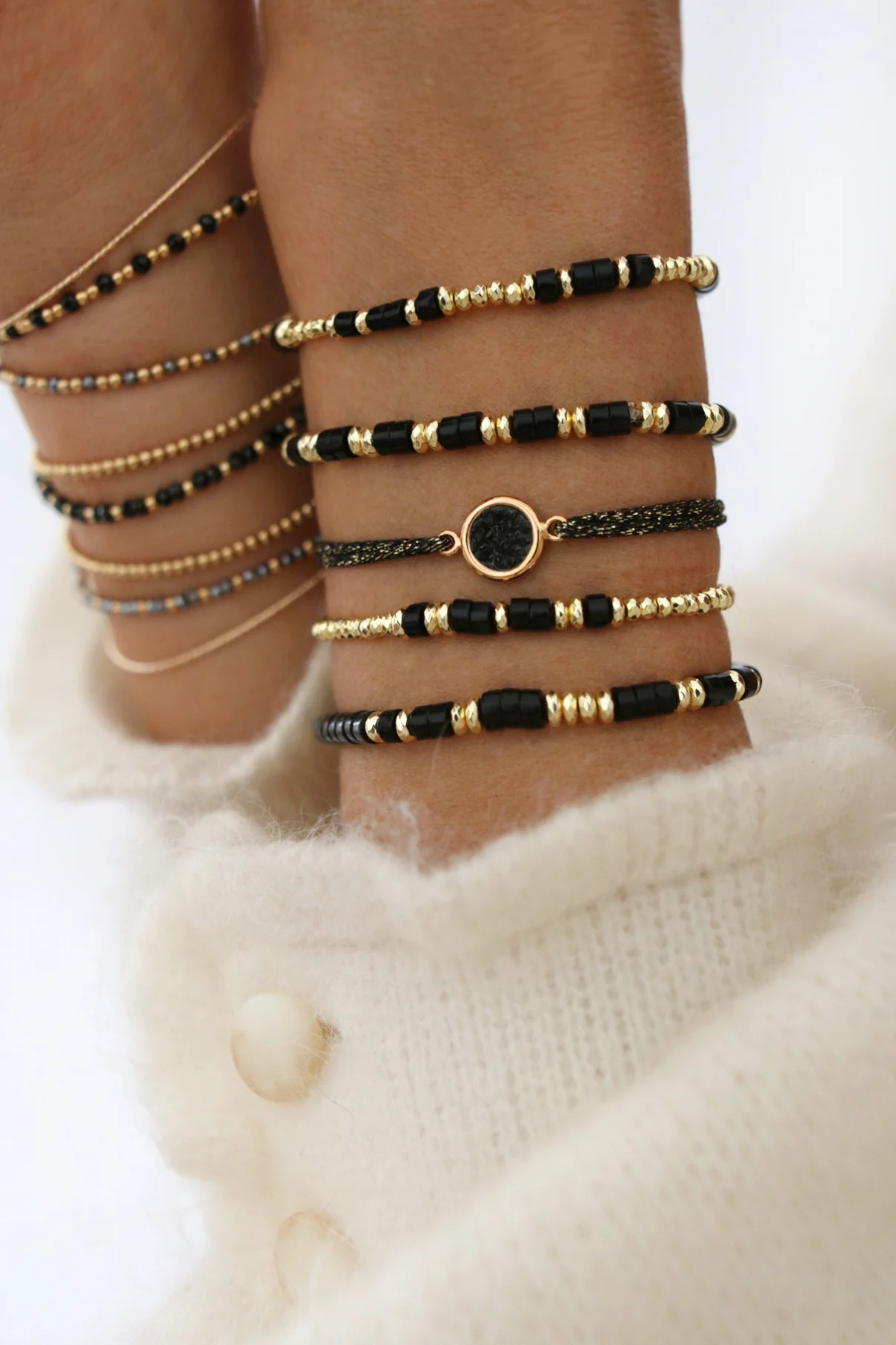 Bracelet de surfeur en pierres fines Agate noire, réalisé sur un fil élastique. – Leo Sedim