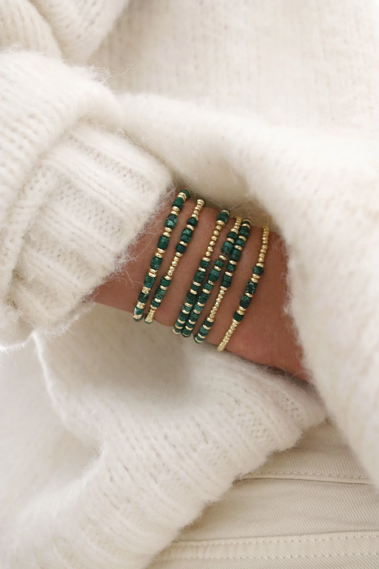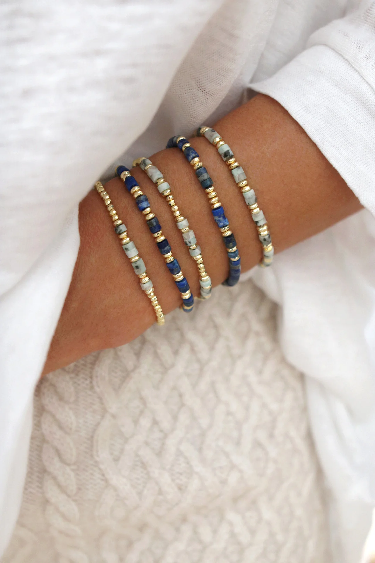 Bracelet réalisé sur un fil élastique.
