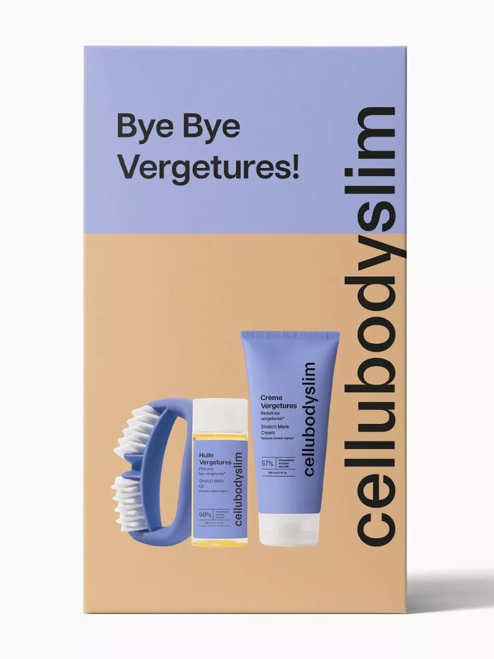 Bye Bye Vergetures! contient : Un body roller, une huile vergeture, une crème vergetures La routine pour combattre les vergetures, prévenir leur apparition et hydrater la peau Prévient : L’Huile prévient l’apparition des vergetures et nourrit intensément la peau. Masse : Le rouleur masseur aide à faire pénétrer l’huile en profondeur. Répare : La crème favorise la réduction des vergetures, des cicatrices et hydrate le corps.