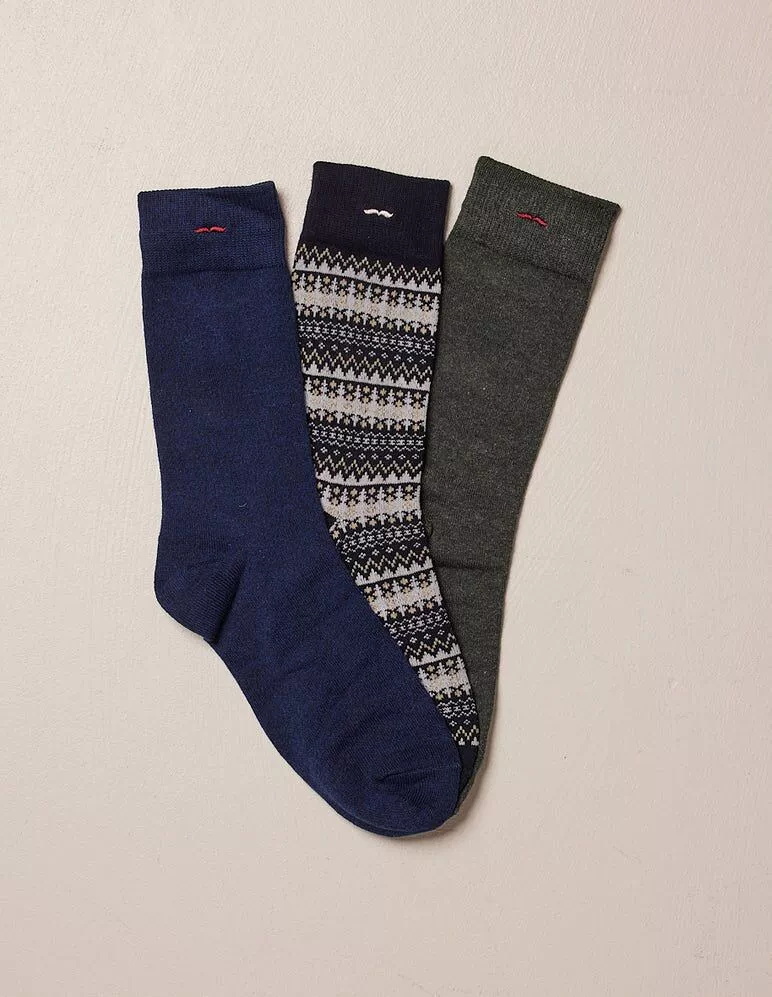 - Composition : Chaussettes 1 et 3 : 74% coton organique, 23% polyester, 3% élasthane. Chausettes 2 : 70% coton organique, 27% polyester, 3% élasthanne