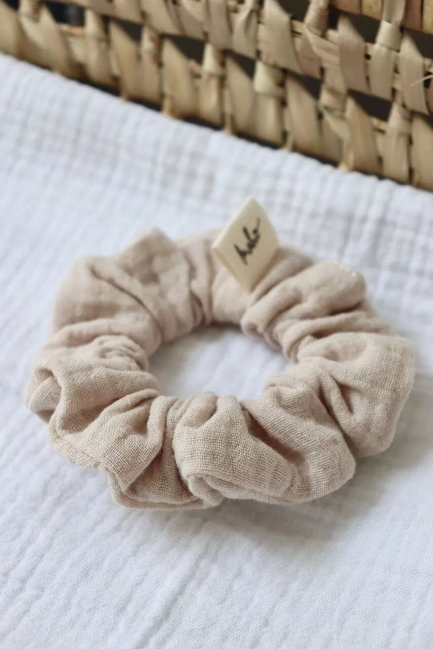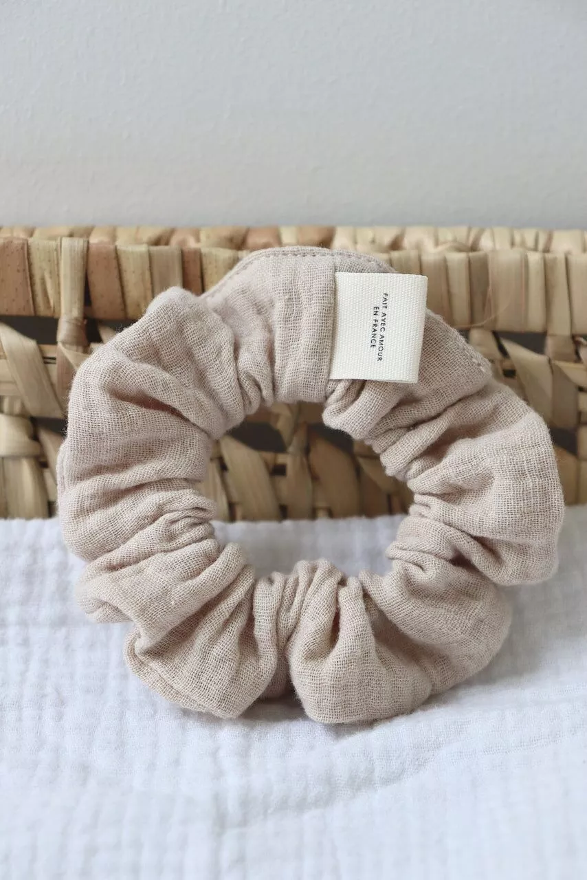 Chouchou en gaze unie pour petits et grand. Deux à trois tours selon l’épaisseur de votre chevelure.