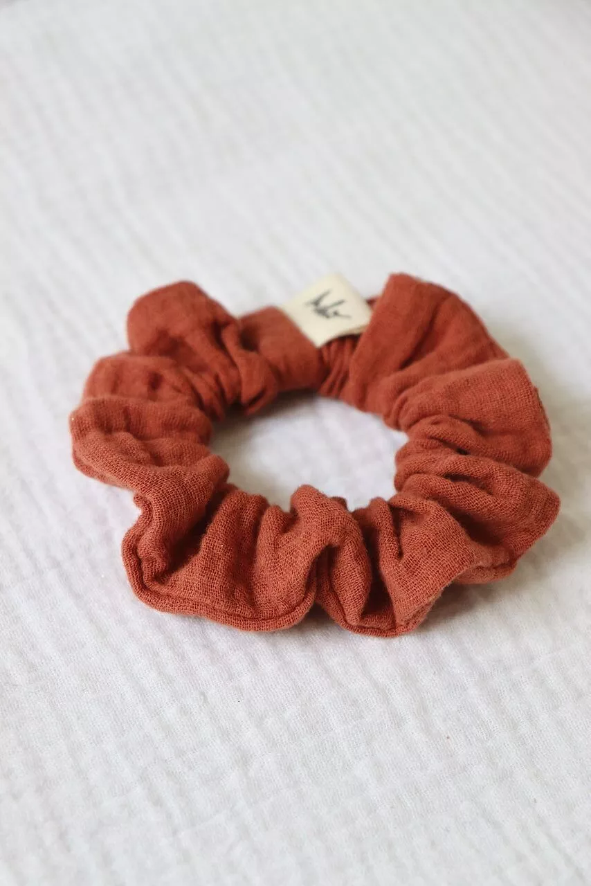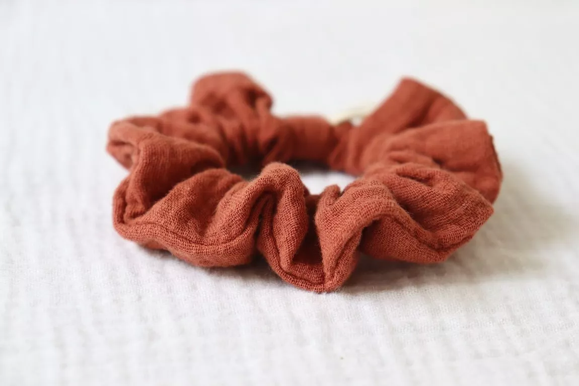 Chouchou gaze tomette pour petits et grand. Deux à trois tours selon l’épaisseur de votre chevelure.