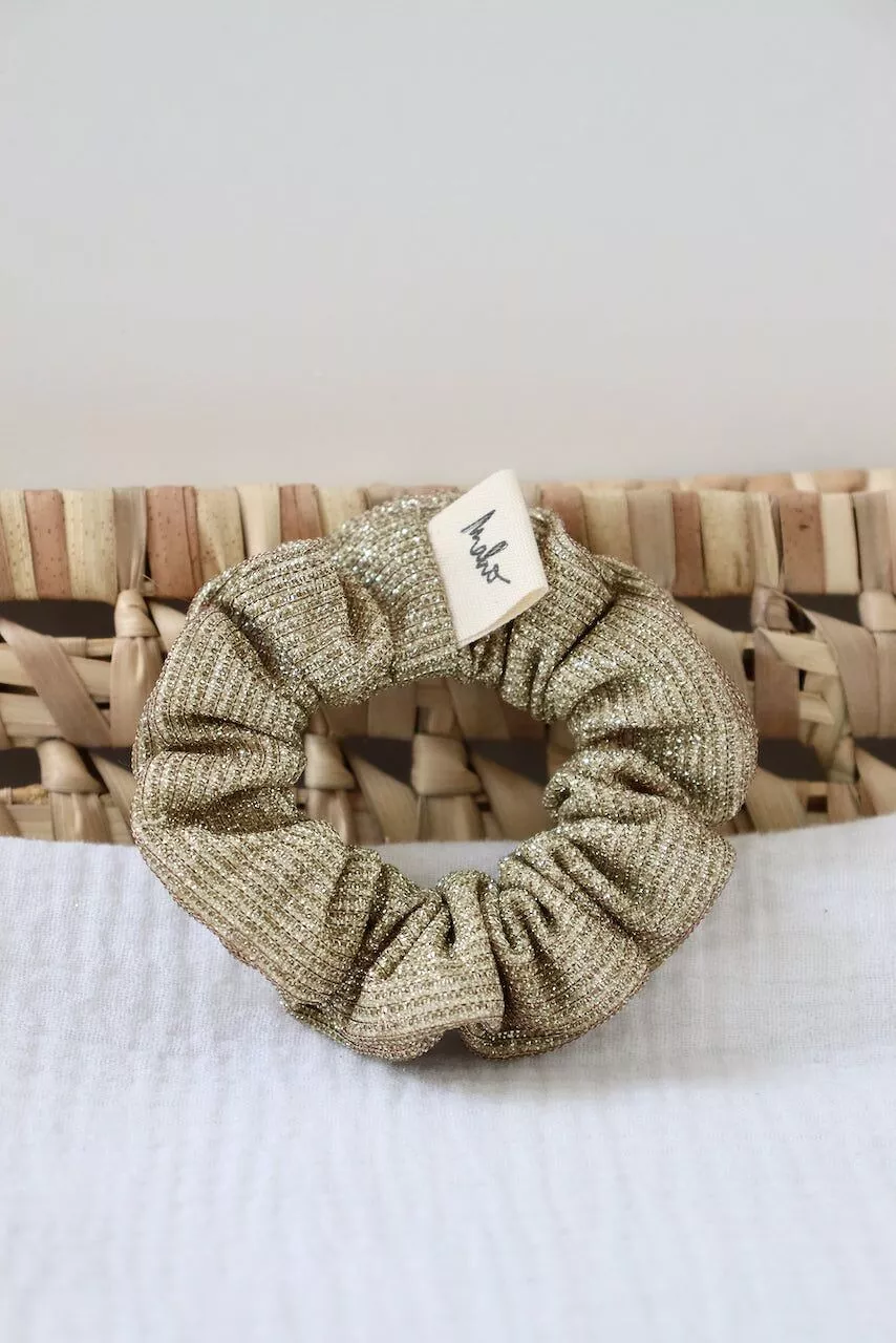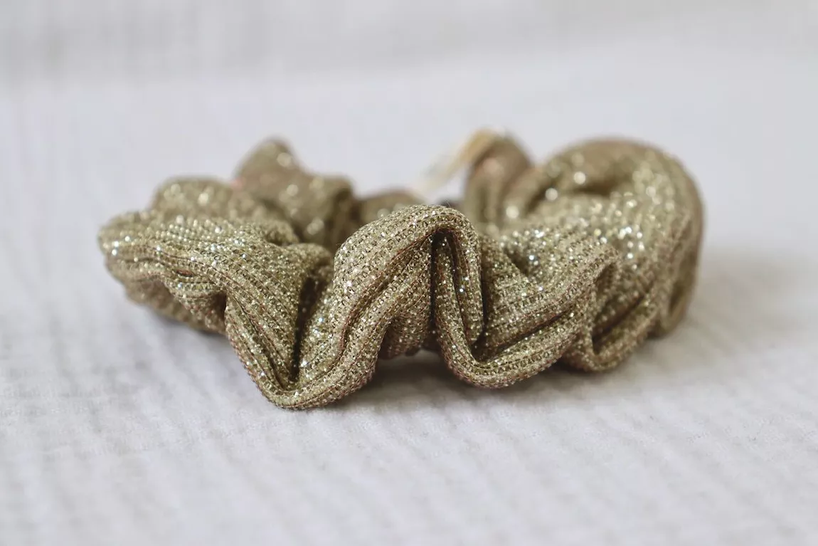 Chouchou Paillettes Or pour petits et grand. Deux à trois tours selon l’épaisseur de votre chevelure.