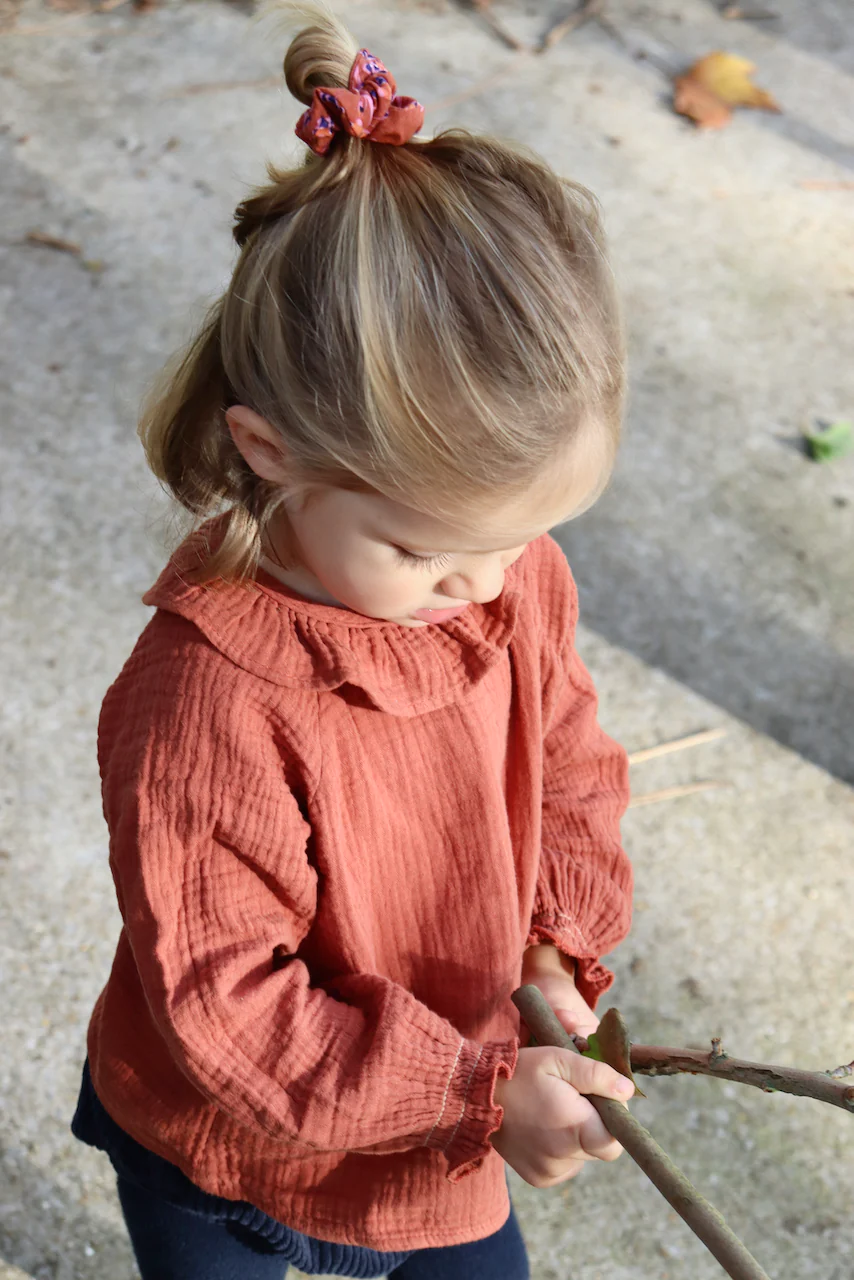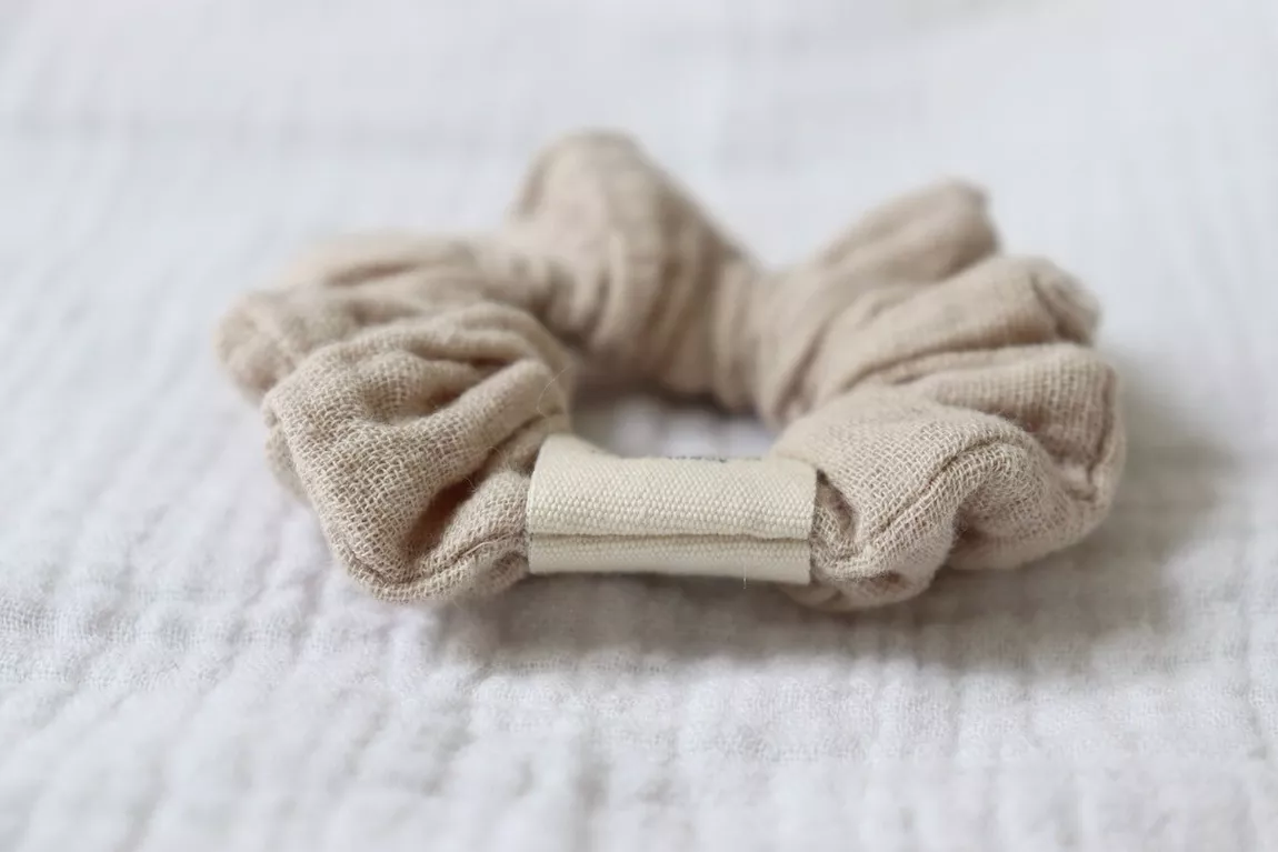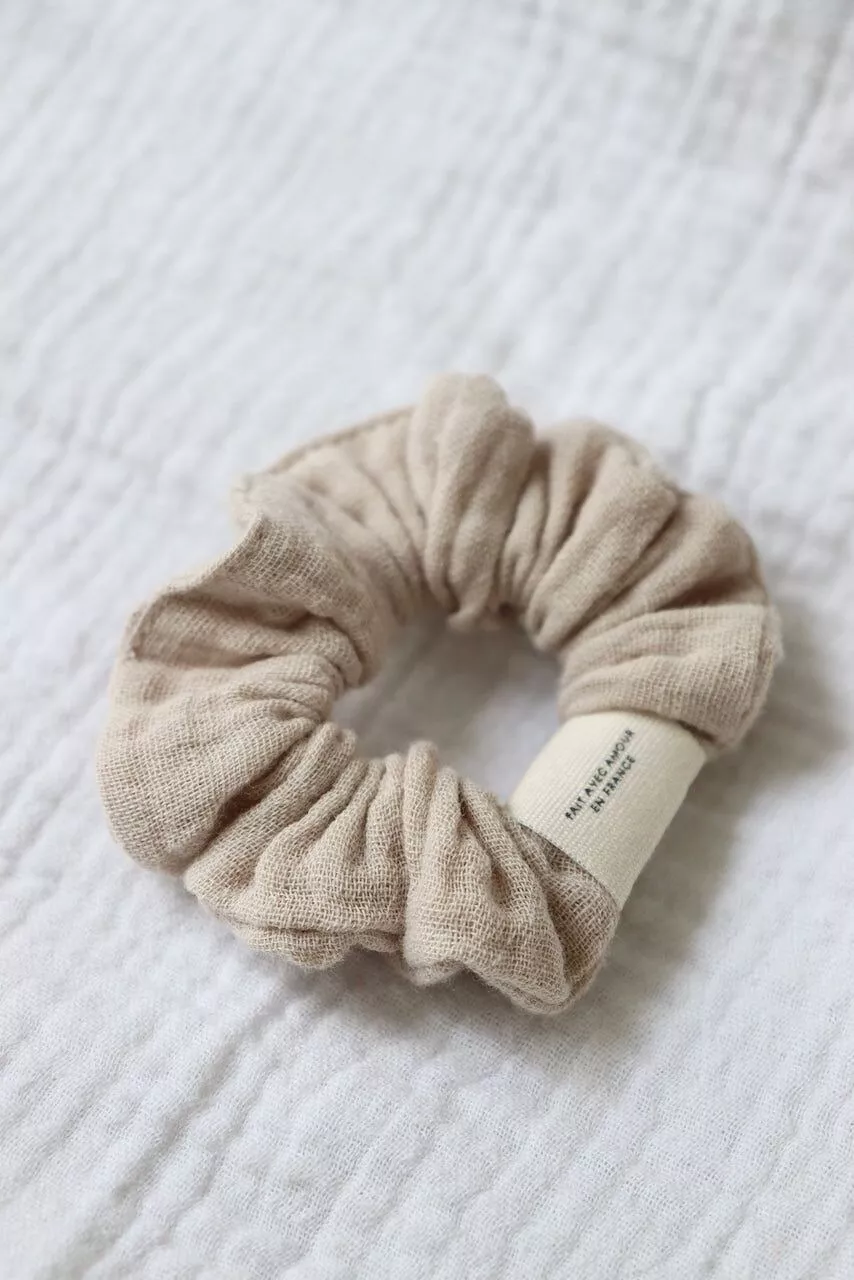 Chouchou en gaze unie, un intemporel qui s’accordera à presque toutes leurs tenues.