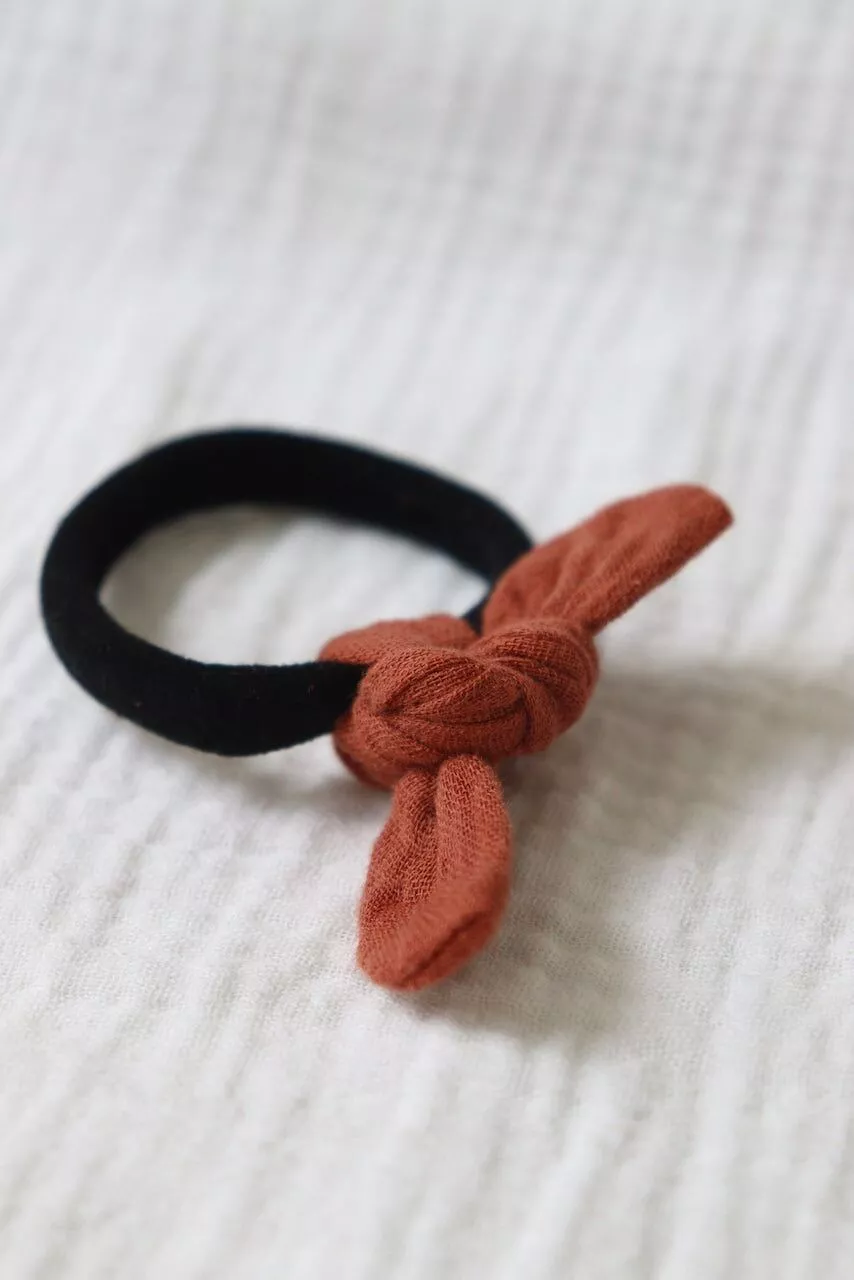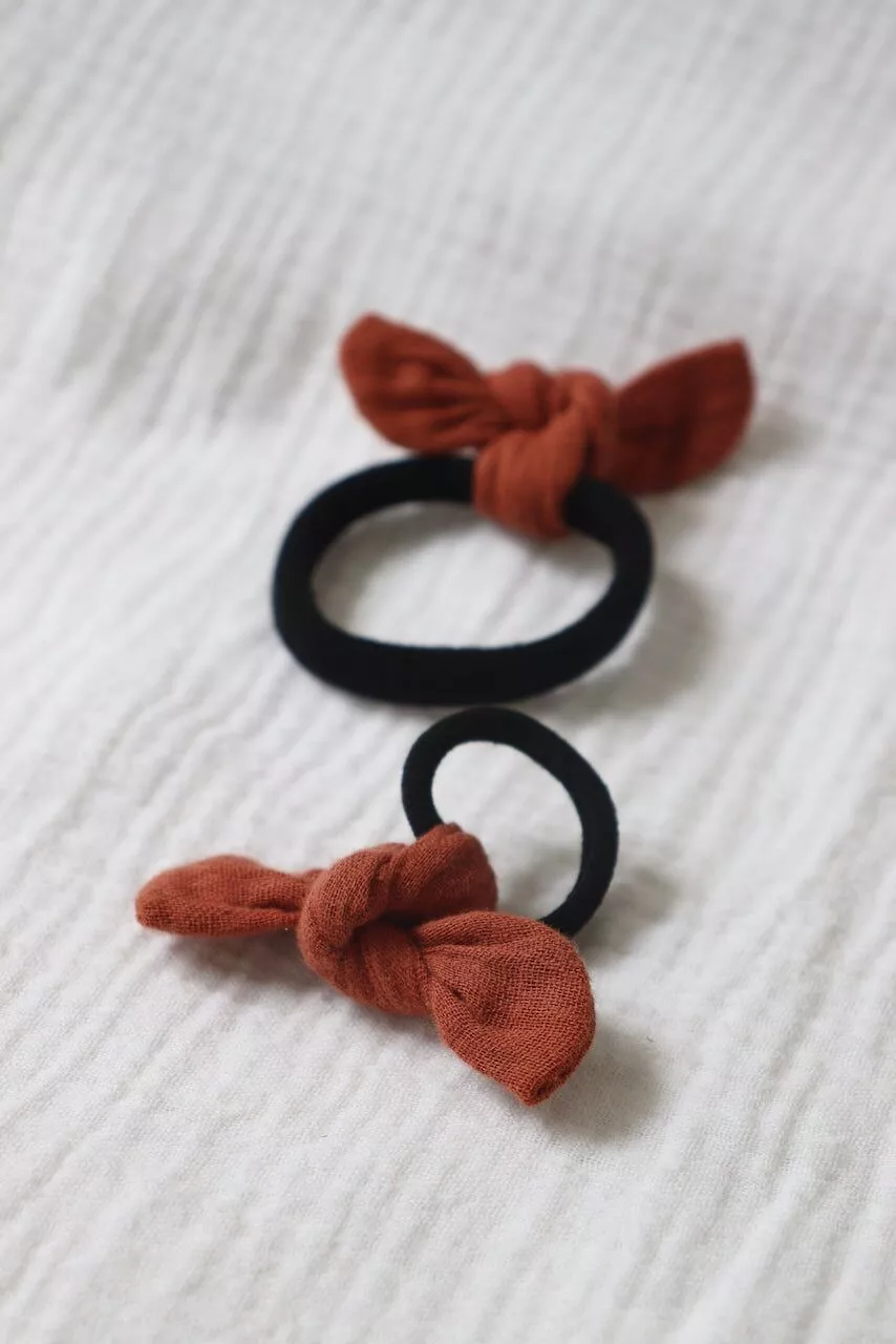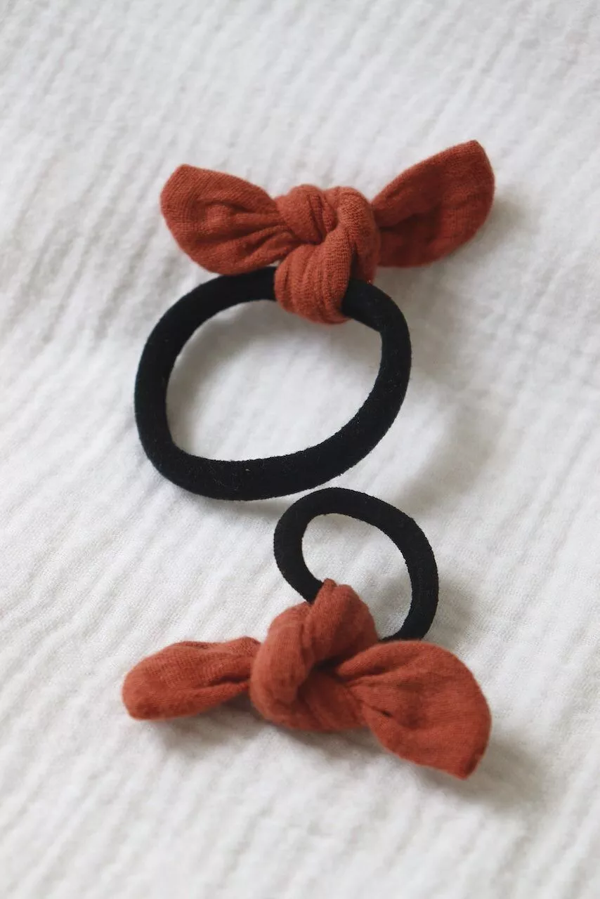- Elastique à nouer dans les cheveux. 2 à 3 tours selon l’épaisseur de chevelure. Deux tailles disponibles.