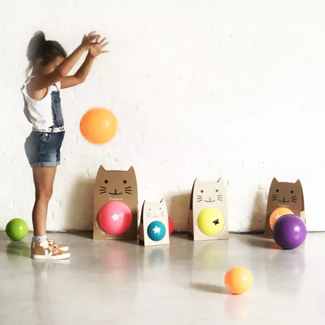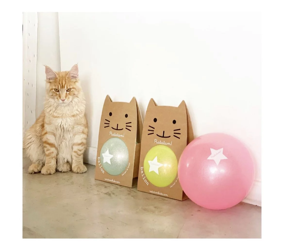 L’emballage kraft Chat et le ballon bulle à paillettes sont fabriqués en France pour répondre aux objectifs de qualité et de durabilité de la marque Ratatam.