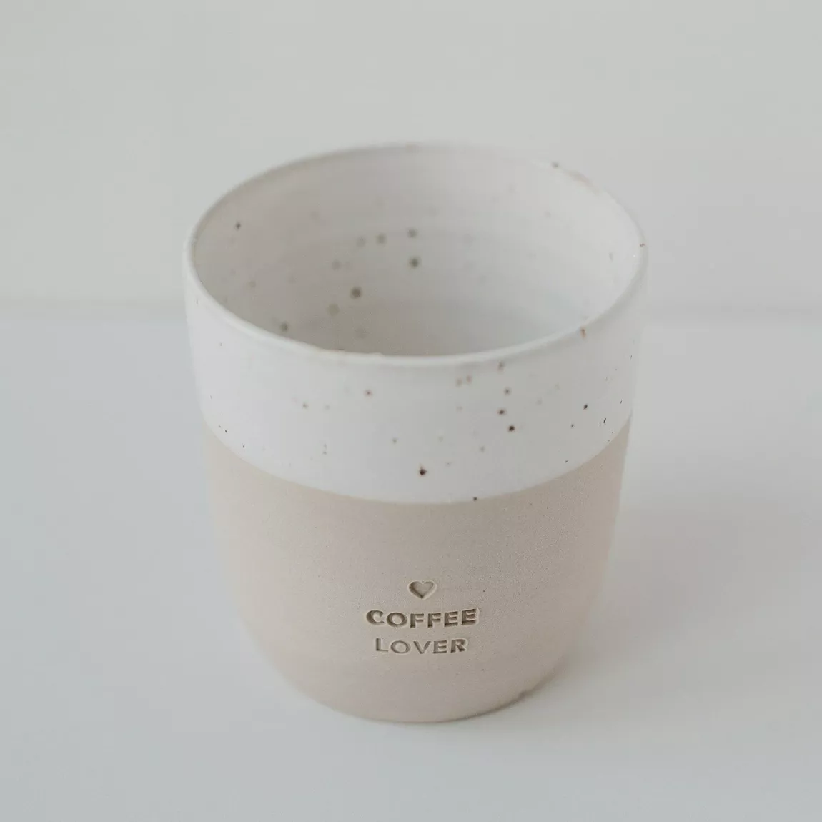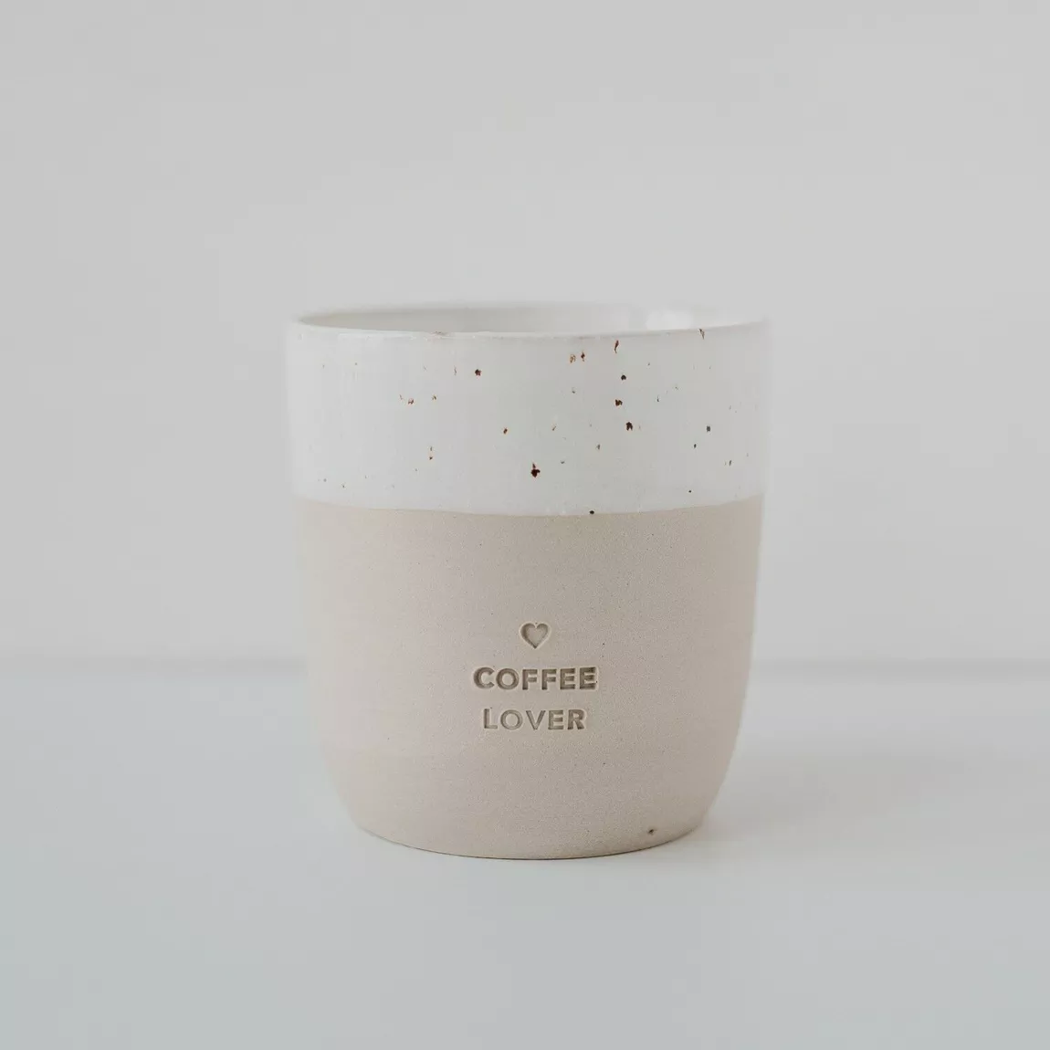 - Description : Une petite poterie du Portugal produit ces merveilleuses tasses avec un travail manuel aimant et est un nouveau compagnon formidable sur notre chemin créatif. Nos tasses font battre les cœurs plus vite, ceux qui aiment l’individualité de Clay & Glaze, car chaque tasse a sa propre touche. Le design minimaliste et les nuances de couleurs naturelles sont complétés par un magnifique gaufrage à l’aveugle «Coffee Lover».